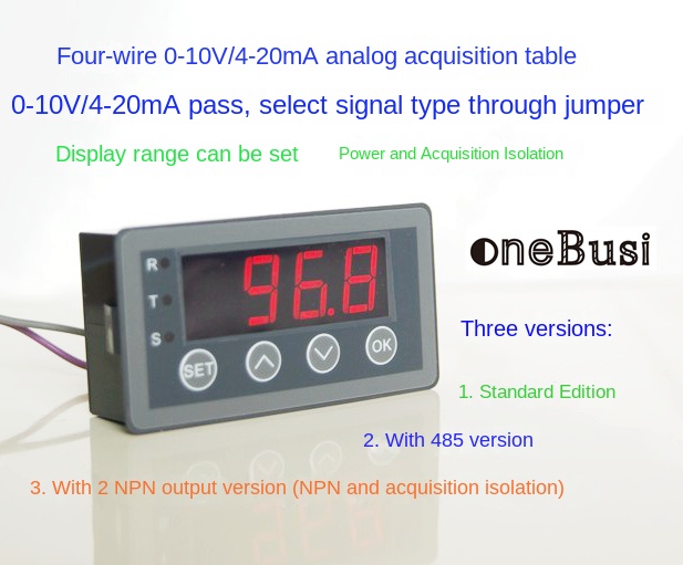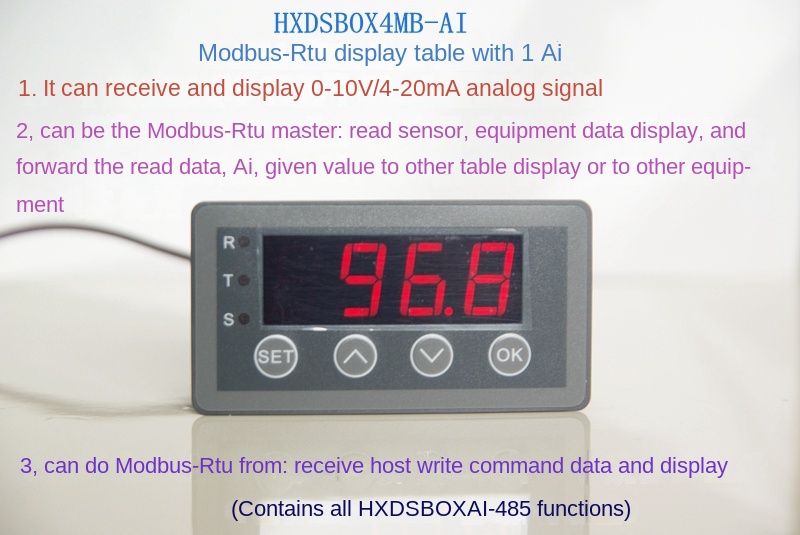 Chuẩn (HXDSBOXAI-NR): Hiển thị tín hiệu analog 0-10V, 0-20mA, 2-10V, 4-20mA, không RS485, không rơ-le, tối ưu chi phí.