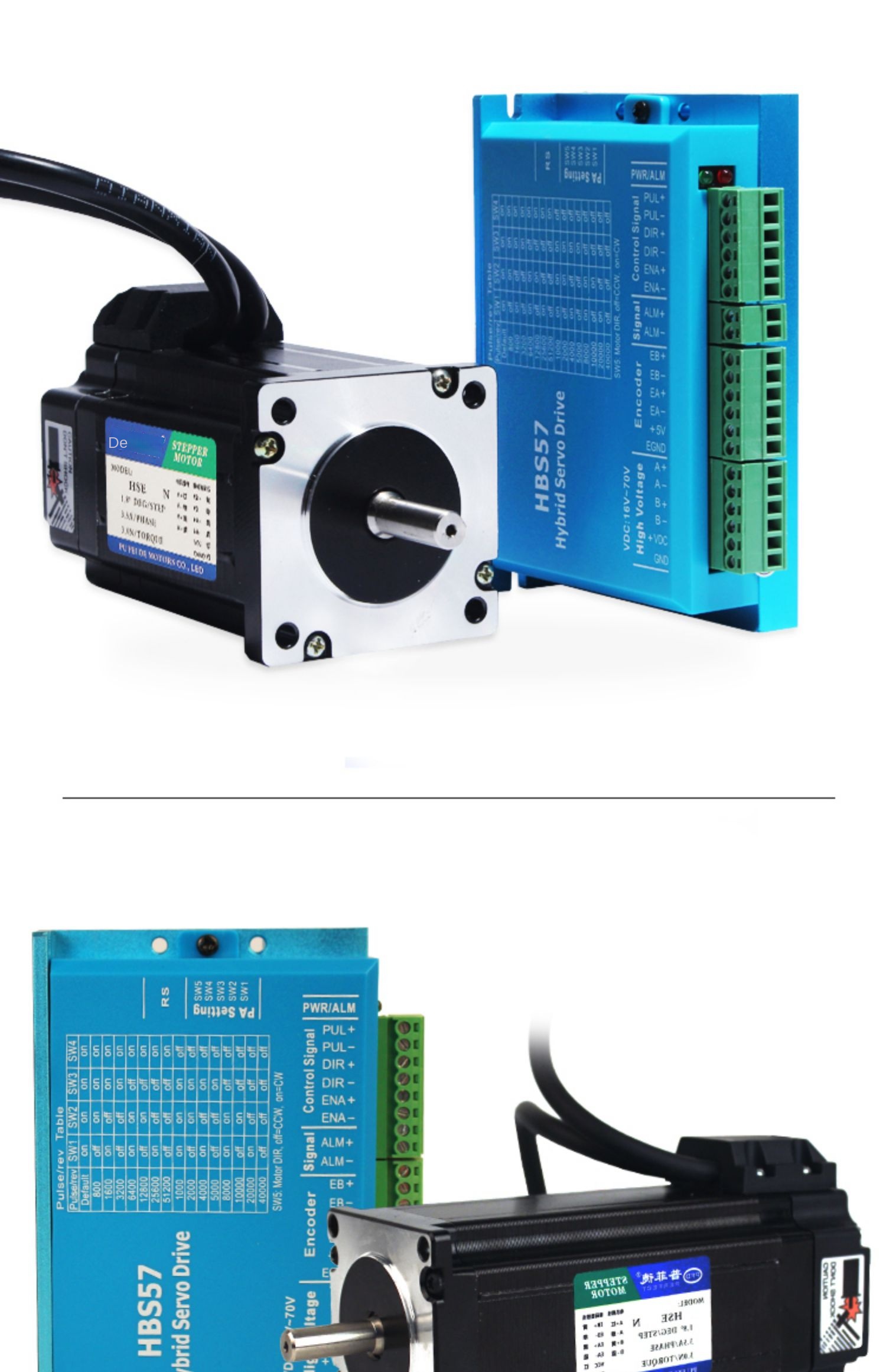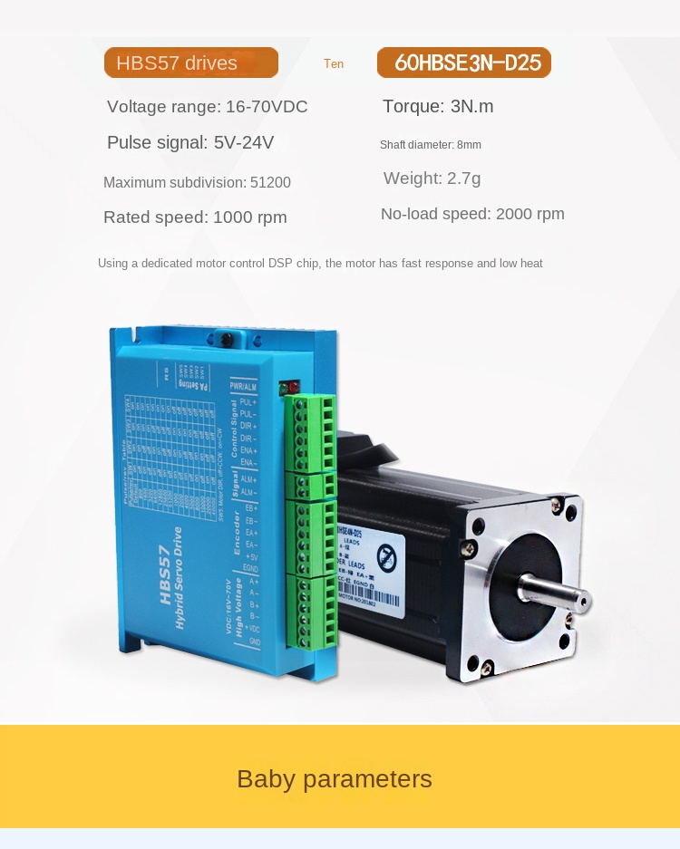 Tùy chỉnh linh hoạt: Dây mã hóa 3m, driver HBS57 (4A) hoặc HBS86H (6A), motor/driver riêng.