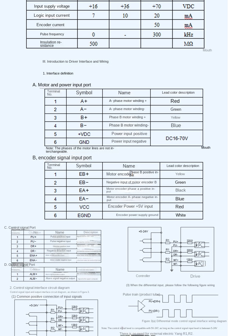 Nguồn: Driver vào DC 20-80V hoặc AC 18-60V (tùy model), kiểm tra dây nguồn motor.