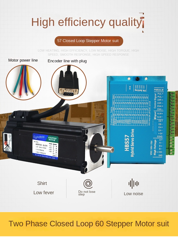 Bộ Động Cơ Bước Vòng Kín 60 (Closed-Loop Stepper Motor) từ thương hiệu Pufide là sản phẩm chất lượng cao, sản xuất tại Trung Quốc. Với mô-men xoắn 3N·m, tích hợp driver HBS57 (4A) hoặc HBS86H (6A), tùy chọn dây dẫn 3m, bộ động cơ này có sẵn dưới dạng motor riêng, driver riêng, hoặc bộ hoàn chỉnh. Sản phẩm lý tưởng cho máy CNC, máy khắc laser, robot công nghiệp, và hệ thống tự động hóa yêu cầu độ chính xác và độ bền cao.