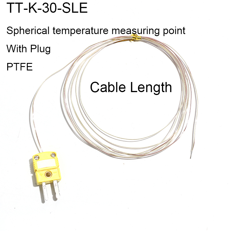 1PC K-type TT-K-30-SLE Thermocouple Temperature Measuring Line SMT PTFE Spherical measuring point With Plug -200~260℃