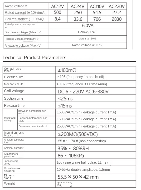 | Độ bền điện | ≥100,000 lần (tải định mức) |
